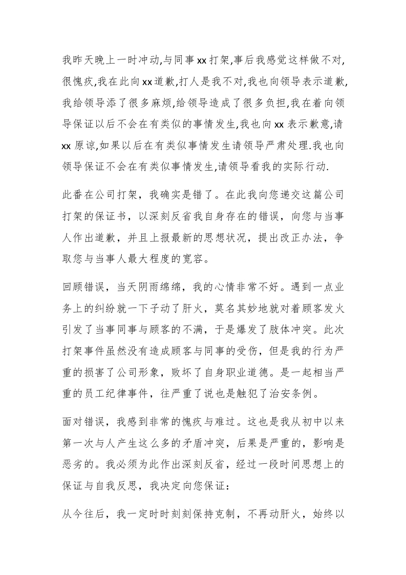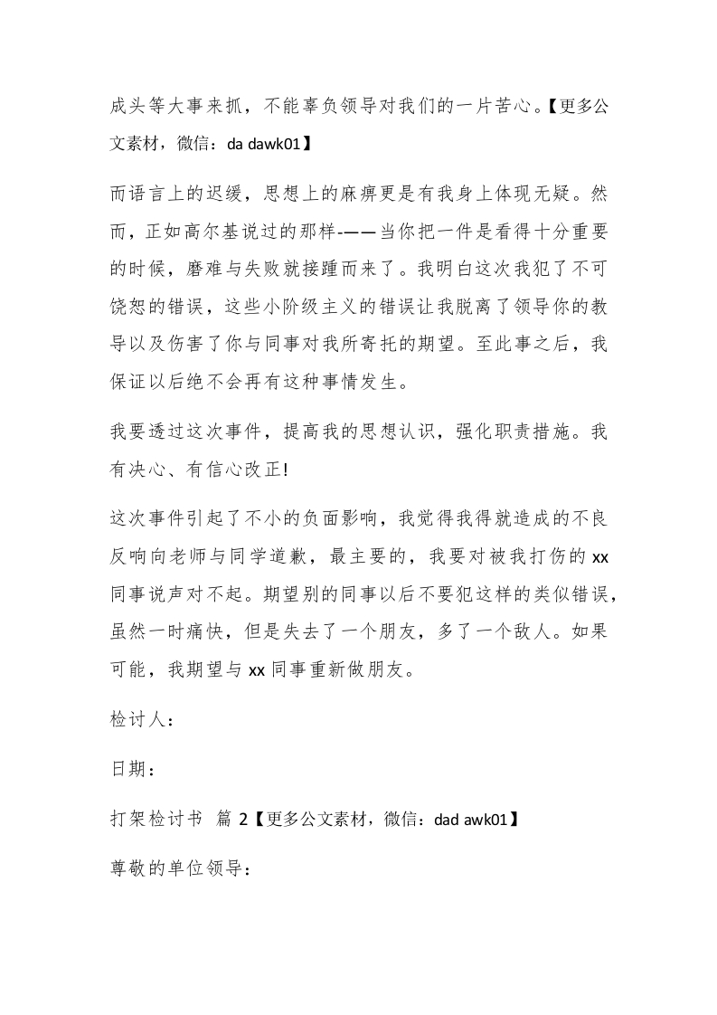 【精选】打架检讨书模板集锦五篇【精选】打架检讨书模板集锦五篇我们在犯错后,避免再次犯错,为此要写检讨书来自我反省,写检讨书的时候一定要有承认错误的意识。检讨书的注意事项有许多,你确定会写吗?下面是小编收集整理的打架检讨书6篇,欢迎大家分享。打架检讨书篇1排paidbegin#敬爱的领导:您好!这天,我怀着万分的愧疚及懊悔给您写下这份检讨书,以向您表示我对叫人打架这种恶劣行为的深痛恶绝及决心。这天下午,我与x发生了口角,由于一时冲动,我把x打伤了,事后想想,这次打架我有很大的职责,我不就应因为他先挑衅我而失去控制,让冲动控制我的理智;我也不就应想当然的认为武力才是解决同事间矛盾的最佳方法。早在我们刚踏进这个工厂的时候,您就已经三令五申,一再强调:全厂同事有了矛盾,自我解决不了能够找我,绝对不能够叫人,不能够掺杂社会成分。其实,领导你的反复教导言犹在耳,严肃认真的表情犹在眼前,我深为震撼,也已经深刻认识到此事的重要性,于是我一再告诉自我要把此事当