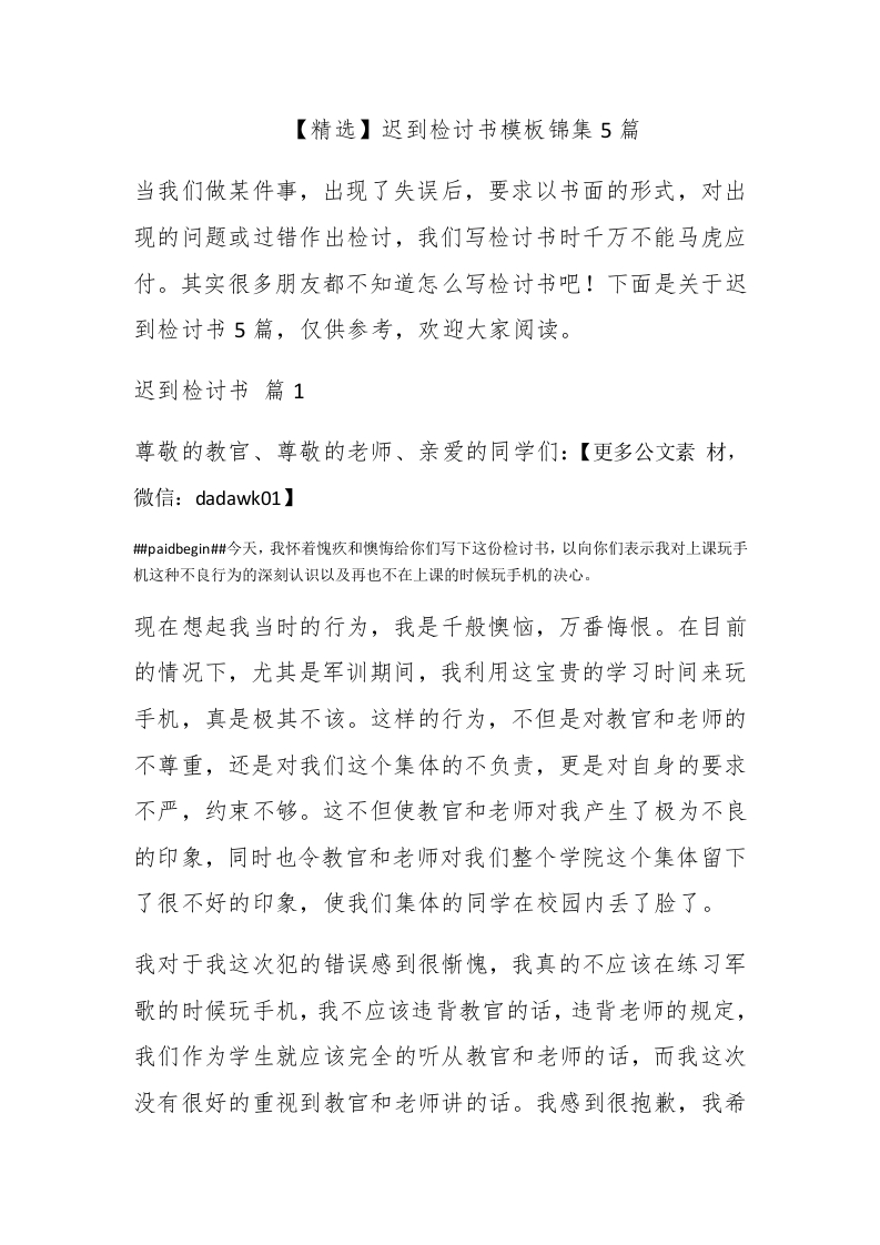 【精选】迟到检讨书模板锦集5篇此内容为付费资源,请付费后查看