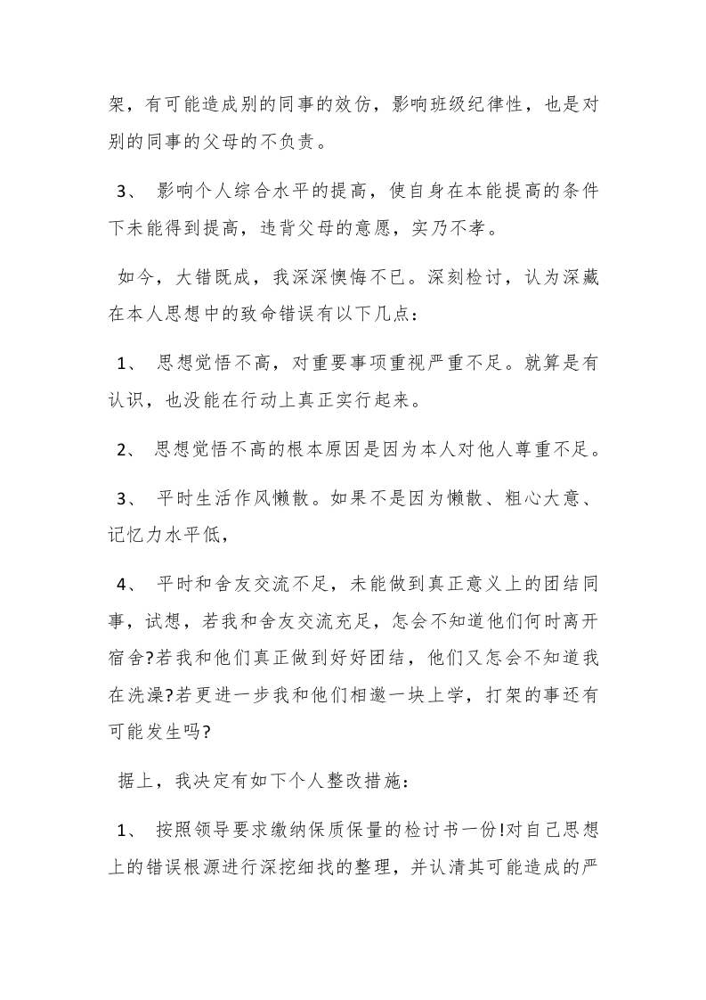 办公室关于打架检讨书范本尊敬的领导:今天,我怀着十二万分的愧疚以及十二万分的懊悔给您写下这份检讨书,以向您表示我对打架这种恶劣行为的深痛恶绝及打死也不再打架的决心。早在我刚踏进公司的时候,您就已经三令五申,一再强调,所有同事,不得迟到,不得打架。其时,领导反复教导言犹在耳,严肃认真的表情犹在眼前,我深为震撼,也已经深刻认识到此事的重要性,于是我一再告诉自己要把此事当成头等大事来抓,不能辜负领导对我们的一片苦心。然而,正如高尔基说过的那样-当你把一件是看得十分重要的时候,磨难和失败就接踵而来了。因为,这所有的问题都只能归结于我,还未能达到一个现代劳动者该具有地认识问题的水平。郴paidbegin#对于我打架的事情,所造成的严重后果如下:1、让领导担心我的安全。本应按时出现的我未能按时出现,试问怎么不会让平时十分关心爱护每一个领导担心。而这样的担心很可能让领导整天工作分心,造成更为严重的后果。2、在同事们中间造成了不良的影响。由于我一个人的打