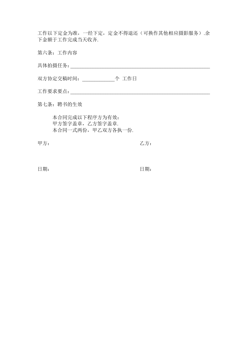 摄影师聘用合同xmtt888个月前发布关注私信14.50KB2页0538 第1页 / 共2页 第2页 / 共2页 已完成全部阅读,共2页 摄影师聘用合同此内容为付费资源,请付费后查看¥1¥2会员服务免费立即购买您当前未登录!建议登陆后购买,可保存购买订单付费资源© 版权声明文章版权归作者所有,未经允许请勿转载。THE END劳务合同 喜欢就支持一下吧点赞8 分享QQ空间微博QQ好友海报分享复制链接收藏