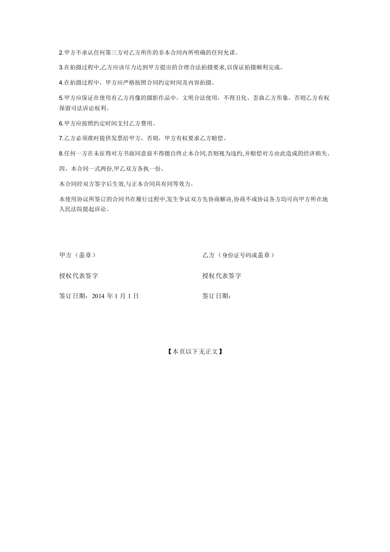 模特拍摄合作合同xmtt885个月前发布关注私信24KB2页03813 第1页 / 共2页 第2页 / 共2页 已完成全部阅读,共2页 模特拍摄合作合同此内容为付费资源,请付费后查看¥1¥2会员服务免费立即购买您当前未登录!建议登陆后购买,可保存购买订单付费资源© 版权声明文章版权归作者所有,未经允许请勿转载。THE END劳务合同 喜欢就支持一下吧点赞13 分享QQ空间微博QQ好友海报分享复制链接收藏