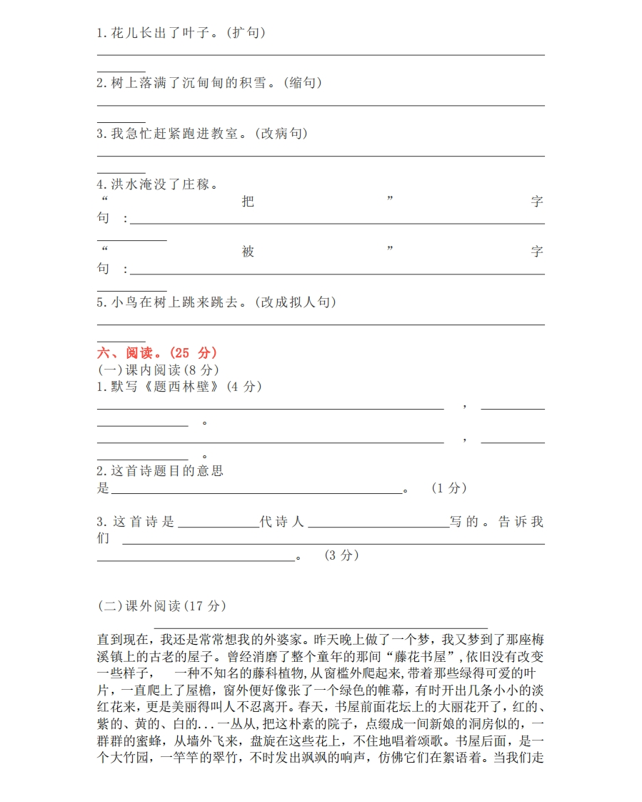 部编版语文四年级(上)期中测试卷10(含答案)此内容为付费资源,请付费后查看