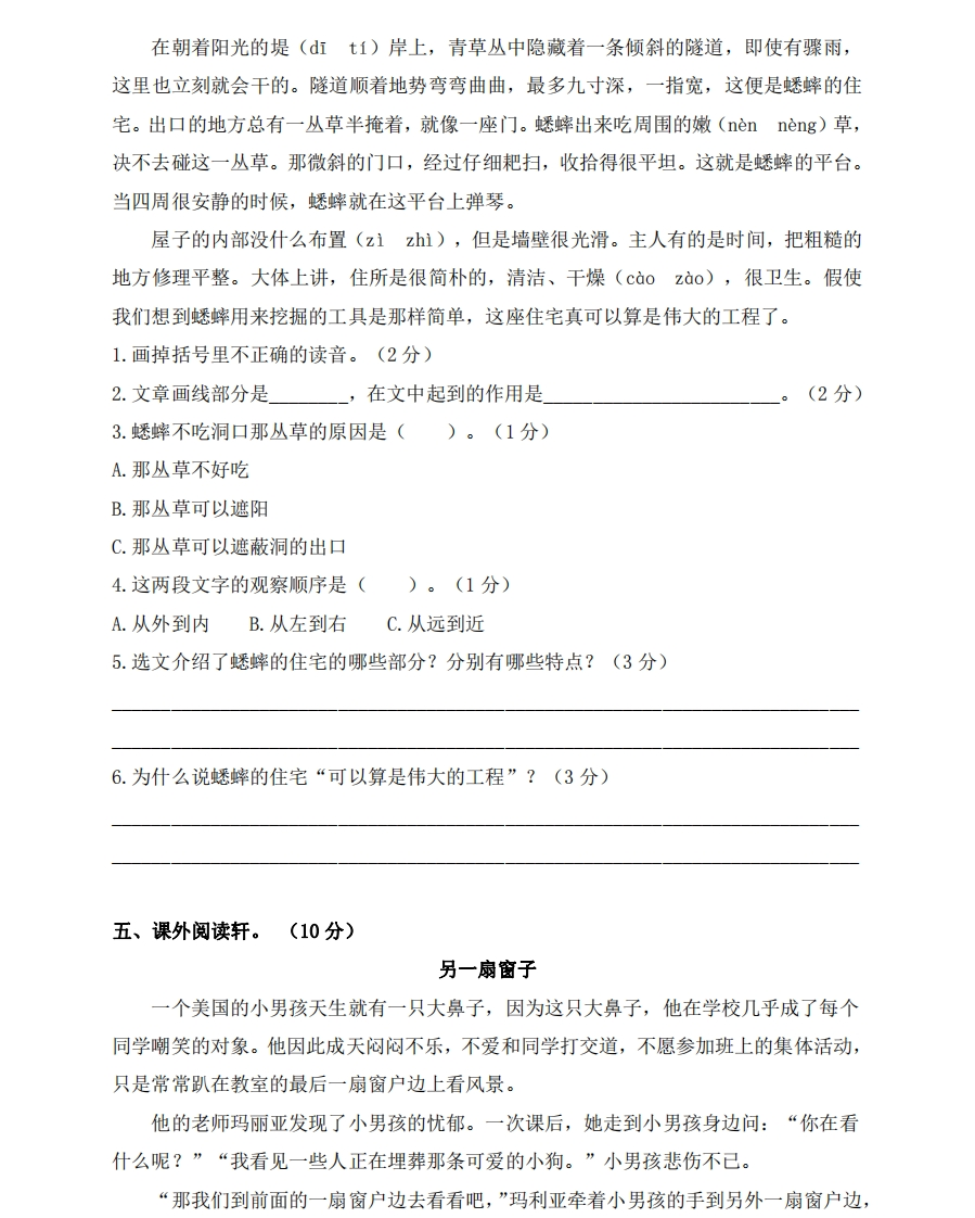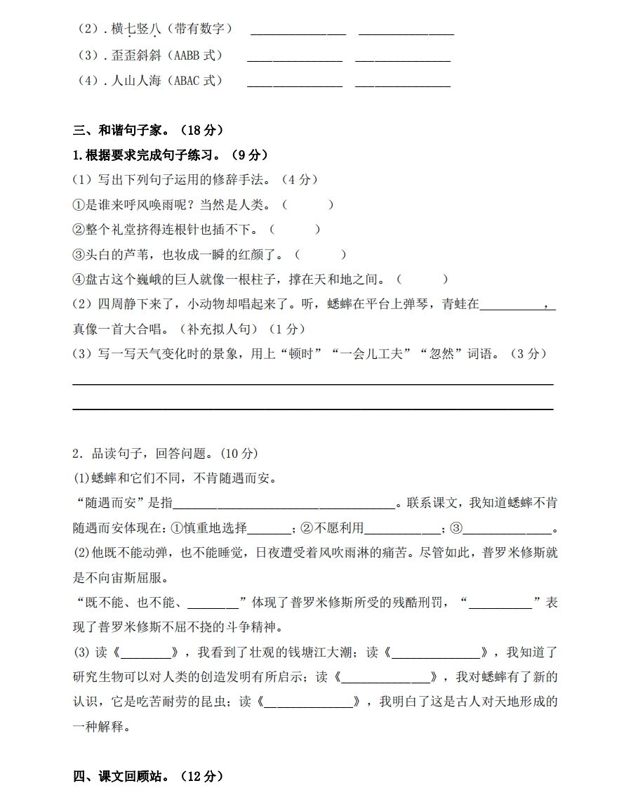 部编版语文四年级(上)期中测试卷5(含答案)此内容为付费资源,请付费后查看