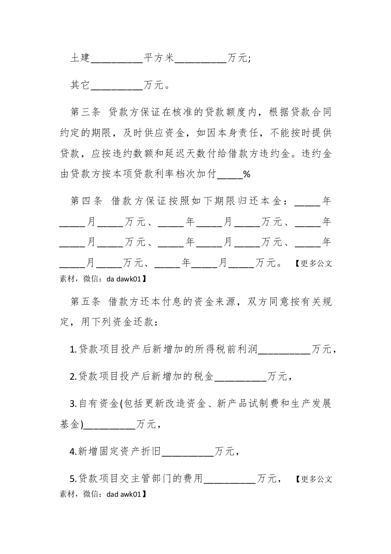 专项资金借款合同范本(最新)专项资金的借贷属于借款的一种,这种借款属于目的性强的一种,也就是知道其用途,作为借款者是可以行驶监督权的,以下是关于专项资金借款合同范本,欢迎参考!专项资金借款合同范本(一)》合同编号:#paidbegin#贷款方:借款方:双方共同遵守国务院颁发的《借款合同条例》,并签订此合同。第一条根据(项目计划批准机关及文号)批准借款方(项目名称及主要内容)项目,总投资万元,其中自筹万元,其它万元,向贷款单位申请(贷款种类)贷款万元。第二条款方根据借款方以下借款用途同意贷款万元。贷款期限:自年月日至年月日。贷款方按照各项贷款办法规定的利率档次、计算时间,向借款方计收利息。借款用途:购置设备台(套)一一万元;