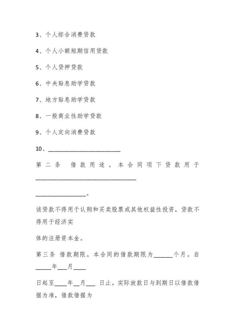 个人借款合同格式个人借款合同格式个人借款合同格式第一条借款种类。贷款人根据借款人的申请,向借款人发放下列第种类贷款。1、个人汽车消费贷款2、个人大额耐用消费品贷款栅paidbegin#3、个人综合消费贷款【更多公文素材,微信:dadawk 01】4、个人小额短期信用贷款5、个人贷押贷款【更多公文素材,微信:dadawk01】6、中央贴息助学贷款7、地方贴个人借款合同格式个人借款合同格式第一条借款种类。贷款人根据借款人的申请,向借款人发放下列第种类贷款。1、个人汽车消费贷款2、个人大额耐用消费品贷款