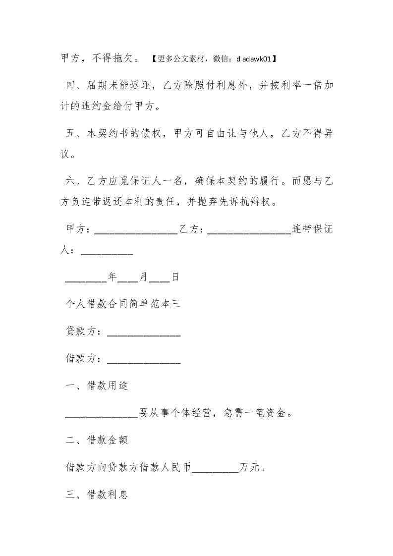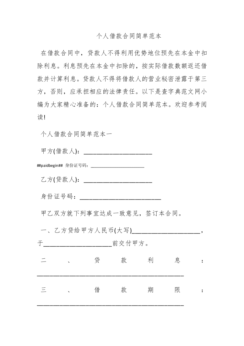 个人借款合同简单范本此内容为付费资源,请付费后查看