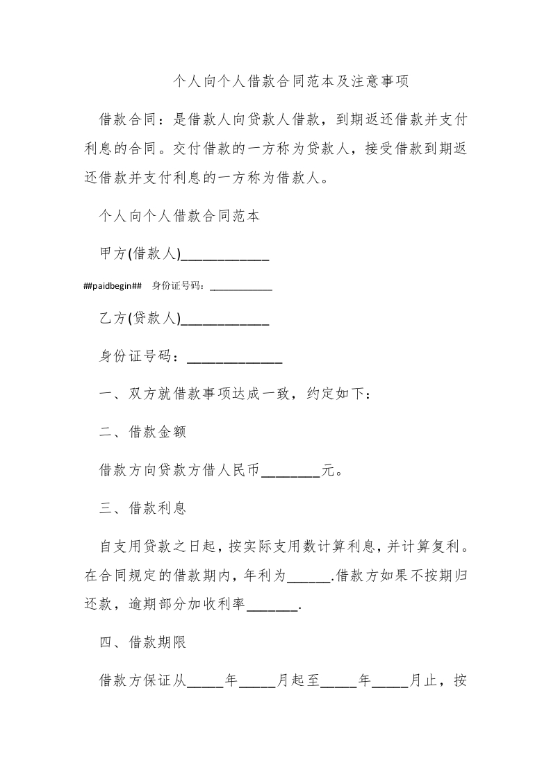 个人向个人借款合同范本及注意事项此内容为付费资源,请付费后查看