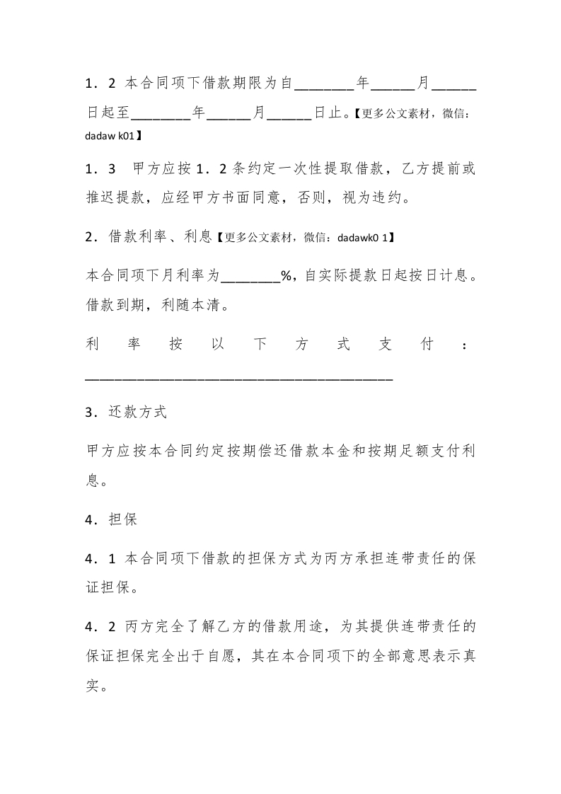 保证担保借款合同(连带责任)xmtt885个月前发布关注私信16.31KB6页03813 第1页 / 共6页 第2页 / 共6页 第3页 / 共6页 试读已结束,还剩3页,您可下载完整版后进行离线阅读 保证担保借款合同(连带责任)此内容为付费资源,请付费后查看¥1会员服务免费立即购买您当前未登录!建议登陆后购买,可保存购买订单付费资源© 版权声明文章版权归作者所有,未经允许请勿转载。THE END借款协议 文本预览 保证担保借款合同(连带责任)出借方(甲方):住所地:联系电话:#paidbegin#借款方(乙方):住所地:联系电话:担保方(丙方):住所地:【更多公文素材,微信:dadawk01】法定代表人:联系电话:甲、乙、丙三方经协商一致,在平等、自愿的基础上签订本协议,以资共同信守。1.借款金额、期限1·1本合同项下借款金额为人民币(大写)元,(小写)元(大小写不一致,以大写为准,下同)。 查看更多 收起部分 喜欢就支持一下吧点赞13 分享QQ空间微博QQ好友海报分享复制链接收藏