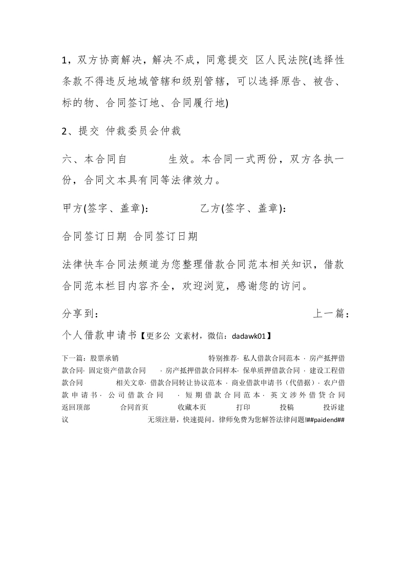 借款合同书xmtt885个月前发布关注私信15.29KB2页03710 第1页 / 共2页 第2页 / 共2页 已完成全部阅读,共2页 借款合同书此内容为付费资源,请付费后查看¥1会员服务免费立即购买您当前未登录!建议登陆后购买,可保存购买订单付费资源© 版权声明文章版权归作者所有,未经允许请勿转载。THE END借款协议 文本预览 借款合同书核心内容:法律快车合同法编辑在下文中为您整理发布了一篇借款合同书。借款合同书甲方(借款人):(按身份证上的顺序填写)#paidbegin#身份证号码:乙方(贷款人):(按身份证上的顺序填写)【更多公文素材,微信:dadawk01】身份证号码:甲乙双方就借款事宜,在平等自愿、协商一致的基础上达成如下协议,以资双方共同遵守。一、乙方贷给甲方人民币(大写),于前交付甲方。二、借款利息三、借款期限:四、还款日期和方式:五、违约责任:六、争议解决方式: 查看更多 收起部分 喜欢就支持一下吧点赞10 分享QQ空间微博QQ好友海报分享复制链接收藏