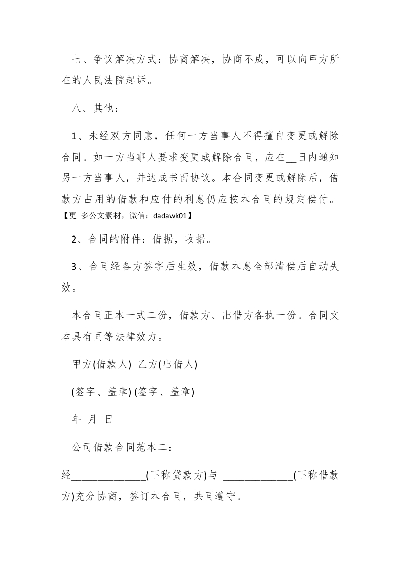 借款合同范本大全下面是为您准备的借款合同范本大全,供大家参考和借鉴噢!希望能对您有所帮助。后续精彩不断,敬请关注!个人借款合同范本一:甲方(出借人)身份证号码:#paidbegin#乙方(借款人)身份证号码:为了明确责任,恪守信用,在双方自愿、协商情况下特签订本合同以资共同信守。一、借款金额(大写)二、借款用途:借款人因需要,急需一笔资金。三、借款利率:,按年收息,利随本清。四、借款期限:借款时间自年月一日起至年月日止。五、还款日期和方式:六、违约责任:借款方应按合同规定的时间还款。如借款方不按期偿还借款,出借方有权限期追回借款,并按合同规定%计算加收逾期利息。
