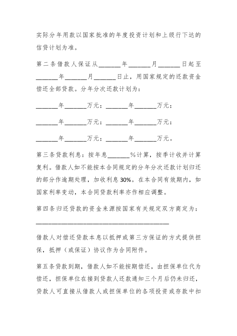 借款合同(供基本建设借贷用)借款合同(供基本建设借贷用)借款合同(供基本建设借贷用)借款人:贷款人:根据《中华人民共和国合同法》及有关规定,借款人为基本建设向贷款人申请贷款,经贷款人审查同意发放。为明确双方责任,恪守信用,特签订本合同借款合同(供基本建设借贷用)借款合同(供基本建设借贷用)#paidbegin#借款人:贷款人:根据《中华人民共和国合同法》及有关规定,借款人为基本建设向贷款人申请贷款,经贷款人审查同意发放。为明确双方责任,恪守信用,特签订本合同共同遵守。第一条借款人向贷款人借款人民币(大写)万元。用于。预计分年用款为;年万元;年万元;年万元;年万元:年万元;年万元。【更多公文素材,微信:da dawko1】