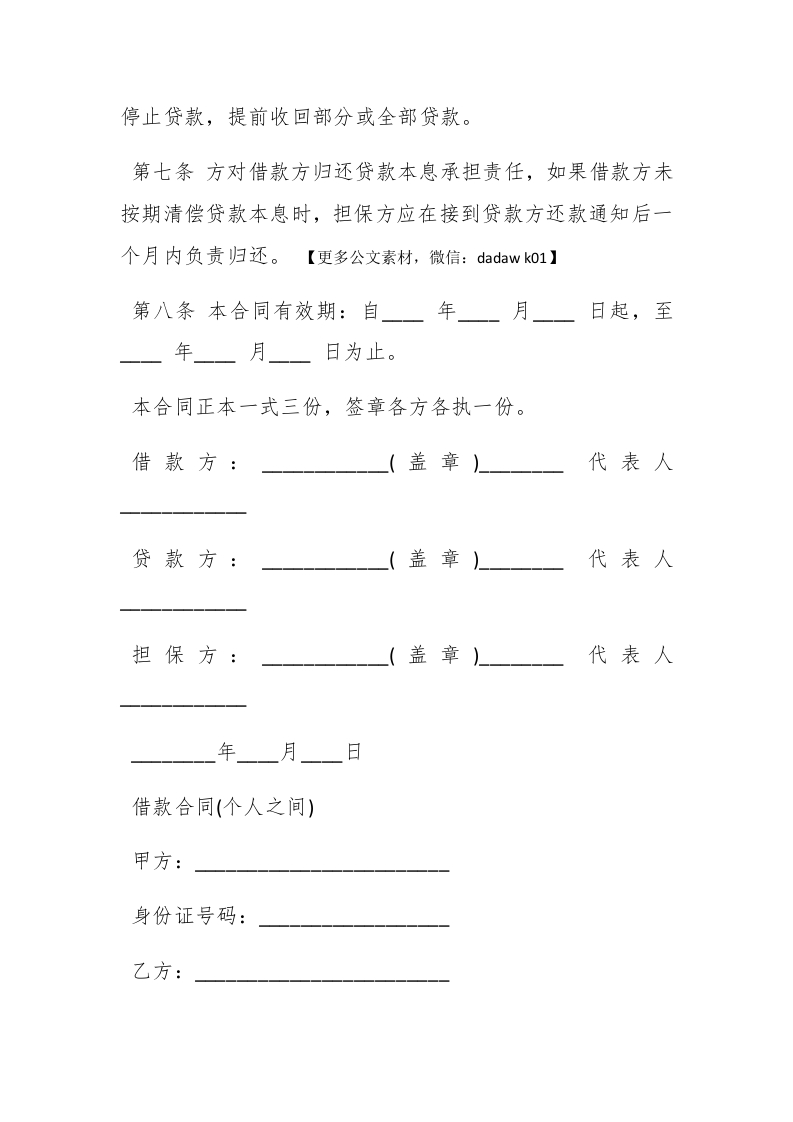 公司企业之间借款合同范本借款合同是借款人向贷款人借款,到期返还借款并支付利息的合同。借款合同又称借贷合同。按合同的期限不同,可以分为定期借贷合同、不定期借贷合同、短期借贷合同、中期借贷合同、长期借贷合同。按合同的行业对象不同,可以分为工业借贷合同、商业借贷合同、农业借贷合借款合同是借款人向贷款人借款,到期返还借款并支付利息的合同。今天查字典范文网小编就为大家精心准备了:公司企业之间的借款合同相关范本。具体内容如下,仅供参考,希望能帮助到大家!借款合同(公司企业之间)郴paidbegin#单位:法定代表人:职务:地址:邮码:电话:贷款单位:法定代表人:职务:地址:邮码:一电话:单位:法定代表人:职务:一