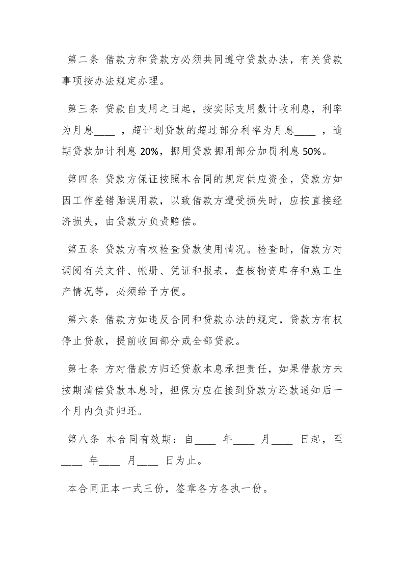 公司单位之间借款合同范本一般借款是要签订合同的,本为大家带来公司单位之间借款合同范本,仅供大家参考。单位:法定代表人:职务:#paidbegin#地址:邮码:电话:贷款单位:法定代表人:职务:地址:邮码:电话:单位:法定代表人:职务:地址:邮码:电话:根据《中华人民共和国合同法》的规定,借款方为保证施工生产正常进行,向贷款方申请建筑企业流动资金贷款,经贷款方审查同意发放,为明确各方权责,特签订本合同共同遵守。第一条本合同规定年贷款额为人民币(大写)万元,用于一一。【更多公文素材,微信:dadawk01】