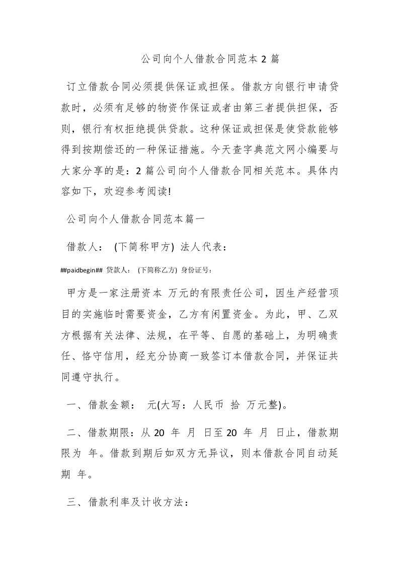 公司向个人借款合同范本2篇此内容为付费资源,请付费后查看