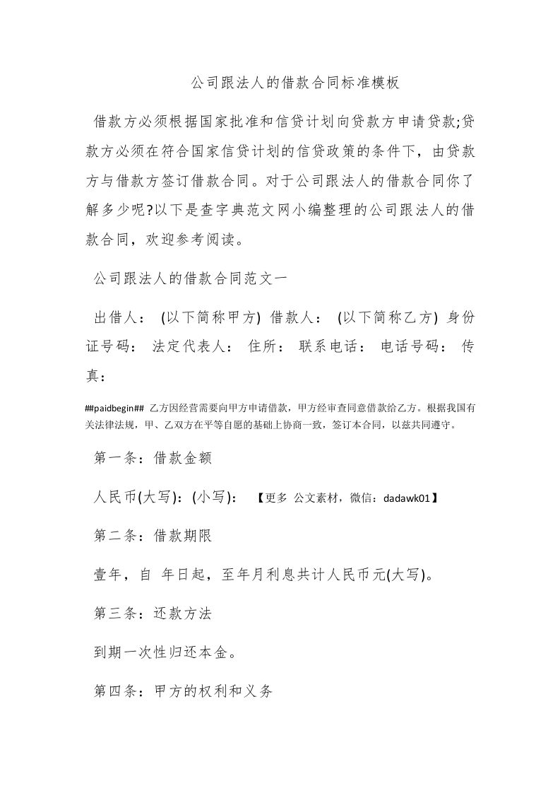 公司跟法人的借款合同标准模板此内容为付费资源,请付费后查看
