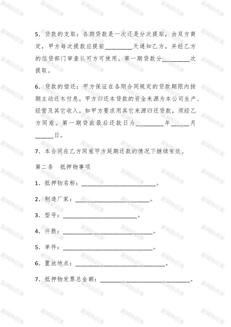 抵押担保借款合同合同编号:贷款抵押人:以下简称甲方贷款抵押权人:以下简称乙方#paidbegin#甲方因生产需要,向乙方申请贷款作为资金。双方经协商一致同意,在甲方以其所有的(以下简称甲方抵押物),作为贷款抵押物抵押给乙方的条件下,由乙方提供双方商定的贷款额给甲方。在贷款期限内,甲方拥有抵押物的使用权,在甲方还清贷款本息前,乙方拥有抵押物的所有权。为此,特订立本合同:第一条贷款内容1.贷款总金额:元整。2.贷款用途:本贷款只能用于的需要,不得挪作他用,更不得使用贷款进行违法活动。3.贷款期限:在上述贷款总金额下,本贷款可分期、分笔周转审贷。因此,各期贷款的金额、期限,由双方分别商定。从第二期贷款起,必须有双方及双方法定代表签字盖章的新的抵押贷款合同,并将其中的一份送交市公证处公证,作为本合同的组成部分,与本合同具有同等法律效力。第一期贷款期限为:个月,即自年月日起,至年月一日止。4.贷款利率:本贷款利率及计息方法,按照中国银行的规定执行。