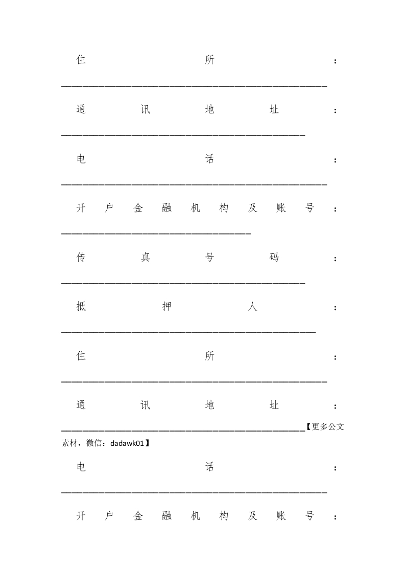 有关个人消费的借款合同格式模板优秀篇一览xmtt885个月前发布关注私信18.73KB14页04513 第1页 / 共14页 第2页 / 共14页 第3页 / 共14页 试读已结束,还剩11页,您可下载完整版后进行离线阅读 有关个人消费的借款合同格式模板优秀篇一览此内容为付费资源,请付费后查看¥1会员服务免费立即购买您当前未登录!建议登陆后购买,可保存购买订单付费资源© 版权声明文章版权归作者所有,未经允许请勿转载。THE END借款协议 文本预览 有关个人消费的借款合同格式模板优秀篇一览查字典范文网小编特意为大家整理准备有关个人消费的借款合同格式模板优秀篇一览,希望内容对您有参考价值。贷款种类合同编号#paidbegin##贷款人:银行住所联系电话传真号码借款人工作单位家庭住址 查看更多 收起部分 喜欢就支持一下吧点赞13 分享QQ空间微博QQ好友海报分享复制链接收藏