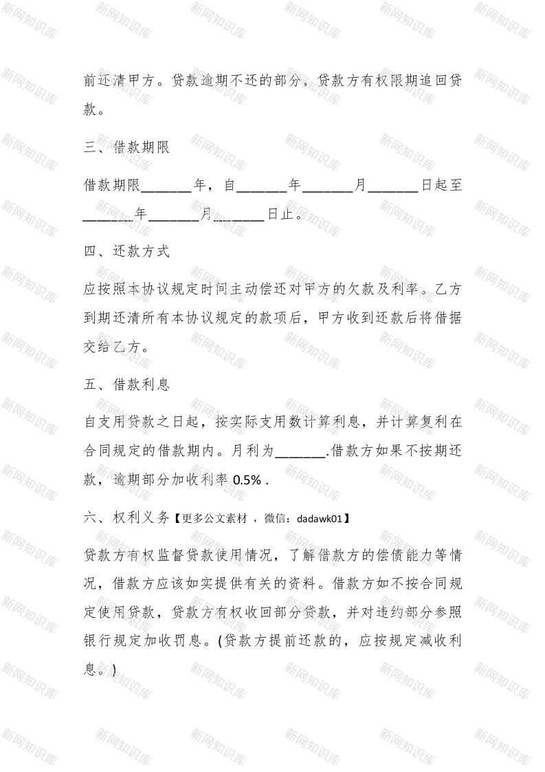 标准的个人借款合同模板借款方一般是指实行独立核算、自负盈亏的全民和集体所有制企业。国家机关、社会团体、学校、研究单位等实行财政预算拨款的单位则无权向金融机构申请贷款。在特殊情况下,城乡个体工商业户、实行生产责任制的农民也可以成为借款合同的主体,同银行、信用社签订借款合同。标准的个人借款合同范本甲方(贷款人)#paidbegin#身份证号:乙方(借款人)身份证号:甲方双方就下列事宜达成一致意见,签订此合同。【更多公文素材,微信:dadawk01】一、借款用途要从事个体经营,急需一笔资金周转。二、借款金额和还款时间。【更多公文素材,微信:dadawko1】向借款人民币元(小写)】整(大写)于年月日,