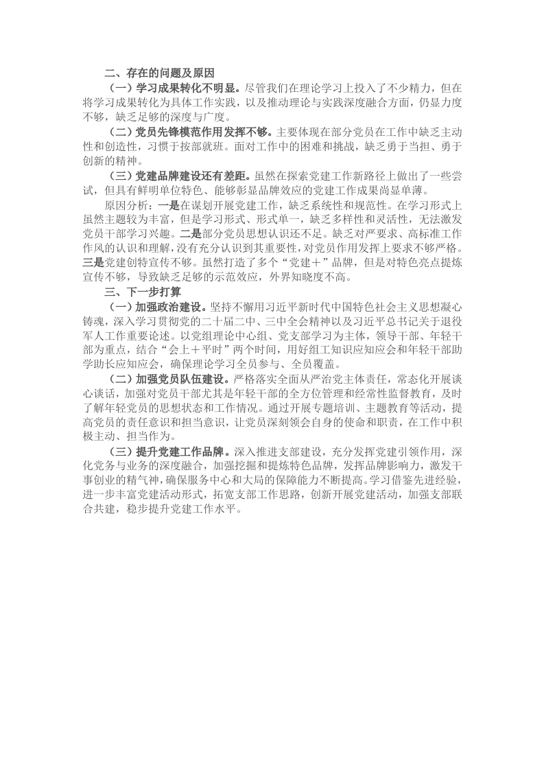 按照要求,我就2024年度抓基层党建工作情况述职如下。一、履职情况和工作亮点(一)坚持党建引领,推动项目建设。一是科学规划部署,做好前期准备。通过深入退役军人和其他优抚对象家中走访调研以及召开退役军人座谈会,初步选定“退役军人和其他优抚对象反映强烈、项目建设示范效应好”的“烈士集中安葬点”作为重点建设项目。认真听取县市有关部门的领导和专家意见建议,在完善烈士安葬点选址确定、红色资源挖掘保护利用等方面做好科学规划。同时根据中央和省、市有关文件精神,积极申报建设项目、资金。二是党员一线带头、打通难点堵点。项目推进过程中不定期实地查看,对项目进展情况进行实时跟踪与指导,及时协调解决项目实施中的难点堵点问题。结合主题党日、烈士纪念日等活动组织党员干部实地查看项目建设XX次并收集项目建设意见建议XX个。(二)服务中心大局,推动党建业务融合。一是探索“驻外党组织+退役军人服务”管理新模式。在退役军人较为集中的XX、XX等地成立退役军人服务站,并聘任素质高、管理协调能力强的退役军人党员担任站长,依托驻外党组织为退役军人提供就业创业、困难帮扶、法律援助等一站式服务。同时发挥服务站与大湾区之间的“桥梁纽带”作用,利用流动退役军人自身视野宽、路子广和朋友圈大的优势,助力家乡经济建设发展。截止目前,为流动退役军人解决各类诉求X件,提供服务和咨询X余人次。二是构建“党建+数字赋能”模式,提升档案管理质效。对现有的XX余份退役士兵原始档案及党员档案进行了分类归档扫描,实现“一人一档、一人一册”,提高了档案信息的快速检索和共享能力,进一步提升退役军人调阅查询各类信息的便捷度,加强退役军人党员档案管理,做到底数清、情况明、无遗漏。(三)坚持政治引领,强化理论武装。一是抓实党纪学习教育,推动走深走实。通过科学制定工作安排,配优配强工作力量,组织引导支部党员对《中国共产党纪律处分条例》突出重点学、丰富形式学、深入领会学。组织全体党员参观自我革命警示教育馆、老兵宣讲团到村社区、XX等地以三句半形式开展党纪宣传,进一步推动党员干部及退役军人学纪、知纪、明纪、守纪。二是注重党对退役军人的思想政治引领。邀请退役军人党员参加局党支部“主题党日”XX余人次,组织“XX红”老兵宣讲团进校园、进机关、进社区、进农村开展“党的二十大”、“长征精神”宣讲XX场,受众人数XX余人。组织重点人员开展红色故事演讲、参加富有“军”味的趣味运动会,观看“抗美援朝”纪录片、赴XX战役遗址等地开展“感恩”教育,让他们筑牢永远感党恩、听党话、跟党走的决心。(四)聚焦党员管理,推动党员队伍“担当善为”。一是抓实队伍日常管理。积极做好调训任务,组织1名干部参加市县直机关组织委员示范培训班。扎实做好党费收缴工作,为X月份退休干部XX重新核定缴费基数标准和比例。扎实做好机关支部与XXX社区党组织结对共建工作,常态化组织在职党员到社区报到开展志愿服务,全年完成党员社区报到6X次,认领微心愿X人次。二是抓实党员先锋岗,持续发挥党员模范作用。健全完善党员先锋岗、党员责任区等机制,充分发挥不同类型党员作用,引导党员在信访维稳、乡村振兴、业务办理上中挑重担、当先锋、打头阵。三是开展股长办事流程“大体验活动”。简化办事流程优化办事效率,提高服务体验,全面落实退役军人“一件事一次办”,不断提升广大退役军人荣誉感和满意度。