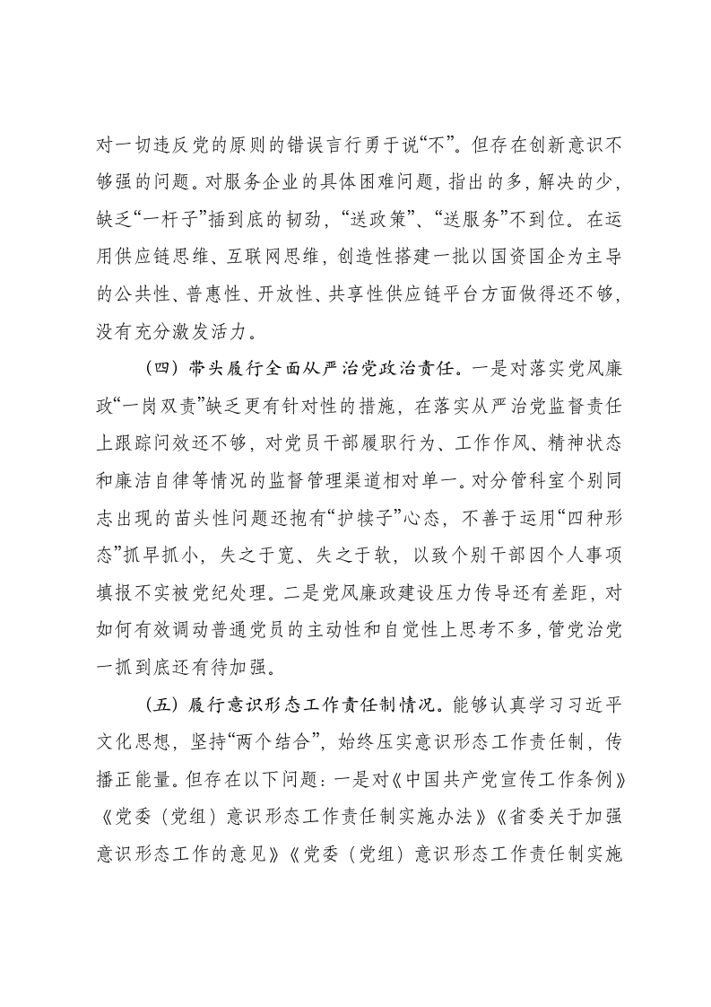2024年度市政府办民主生活会领导干部对照检查材料(四个带头)按照省委、省政府召开民主生活会的有关要求,我始终坚持“思想引领、学习在先”机制,前期我采取个人自学和集中学习相结合的方式,全面深入学习党的二十届三中全会精神,系统研读党章、《中国共产党纪律处分条例》等党内法规,深入开展交心谈心,发放征求意见函,充分征求兄弟单位、分管领域与分管科室的意见,系统梳理存在的问题,深刻反思原因,进一步明确努力方向,立行立改、全面整改。现将对照检查情况汇报如下:一、存在问题及具体表现(一)带头严守政治纪律和政治规矩,维护党的团结统一方面。一是执行政治纪律规矩不够到位。自觉维护党章党规党纪的权威性和严肃性的意识还不够强,从政治上观察、分析、处理问题的敏锐性有待加强,抓党章党规党纪学习的措施方法不多,存在上热下冷、效果递减现象。例如虽然我在各种会议上反复强调抵制酒驾醉驾问题,今年组织党员干部学习酒驾醉驾相关法律法规、党纪党规3次,但今年市纪委通报我单位存在酒驾问题1例,说明在教育管理干部职工方面还存在短板。二是贯彻上级决策部署不够有力。执行上级决策部署时,措施还不够精准,有时候考虑本部门利益多一些,上下一盘棋的思想树得还不够牢固。在立足长远、系统谋划高质量发展方面做得还不够好,破解基层社会