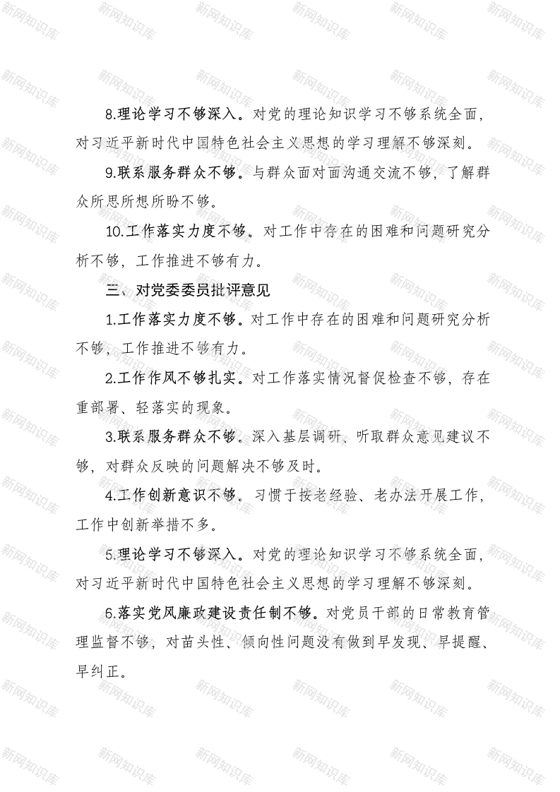 2024年度民主生活会对照检查、批评与自我批评意见汇总此内容为付费资源,请付费后查看