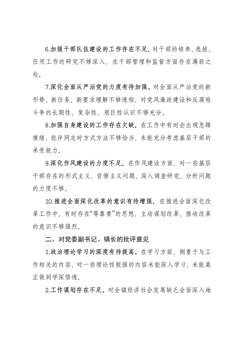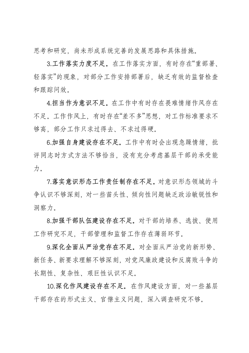 民主生活会、组织生活会查摆问题、批评和自我批评意见汇总(60条)一、对党委书记的批评意见1政治理论学习深度有待提升。在学习方面,侧重于与工作紧密相关的内容,例如《习近平谈治国理政》第四卷、《党的二十大报告辅导读本》等,对中央和省市重要会议精神的学习较为及时。然而,对《习近平著作选读》《习近平新时代中国特色社会主义思想专题摘编》等内容的学习,未能做到深入钻研。2.贯彻落实上级决策部署的行动力度不足。在落实上级决策部署时,存在行动滞后、落实不彻底的情况。有时未能透彻理解上级政策,导致部分工作未能严格按照上级要求落实到位。3.防范化解重大风险的能力存在短板。面对急难险重任务时,偶尔会产生畏难情绪,缺乏斗争精神和责任担当,在处理一些问题时,未能做到迅速果断。4加强党的建设工作存在薄弱环节。在基层党建工作方面,抓党建工作的力度有所欠缺,对党建工作中的深层次问题以及党员、群众关心的热点难点问题,缺乏深入思考和有效破解。5.落实意识形态工作责任制的力度不足。对意识形态领域斗争的认识不够深刻,对于一些苗头性、倾向性问题,缺乏政治敏锐性和洞察力。