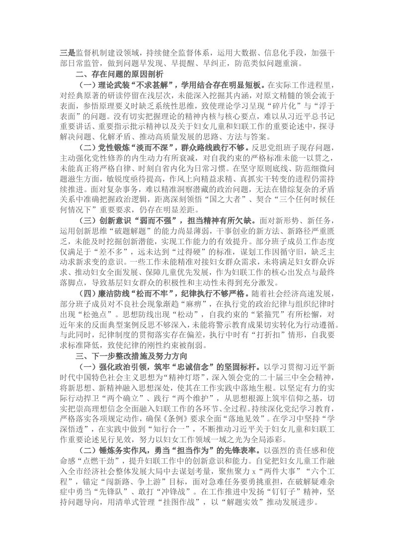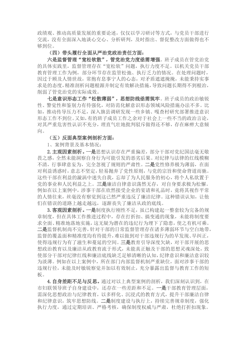 市妇联班子2024年度民主生活会对照检查材料(四个带头+反面案例剖析)此内容为付费资源,请付费后查看