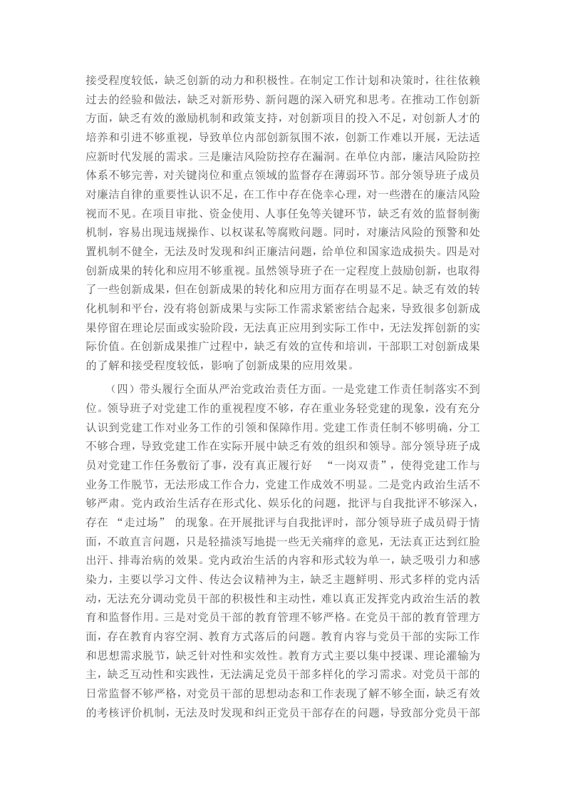 市直部门领导班子2024年度专题民主生活会对照检查材料(四个带头)此内容为付费资源,请付费后查看