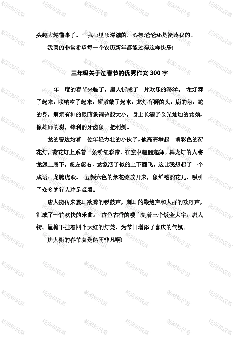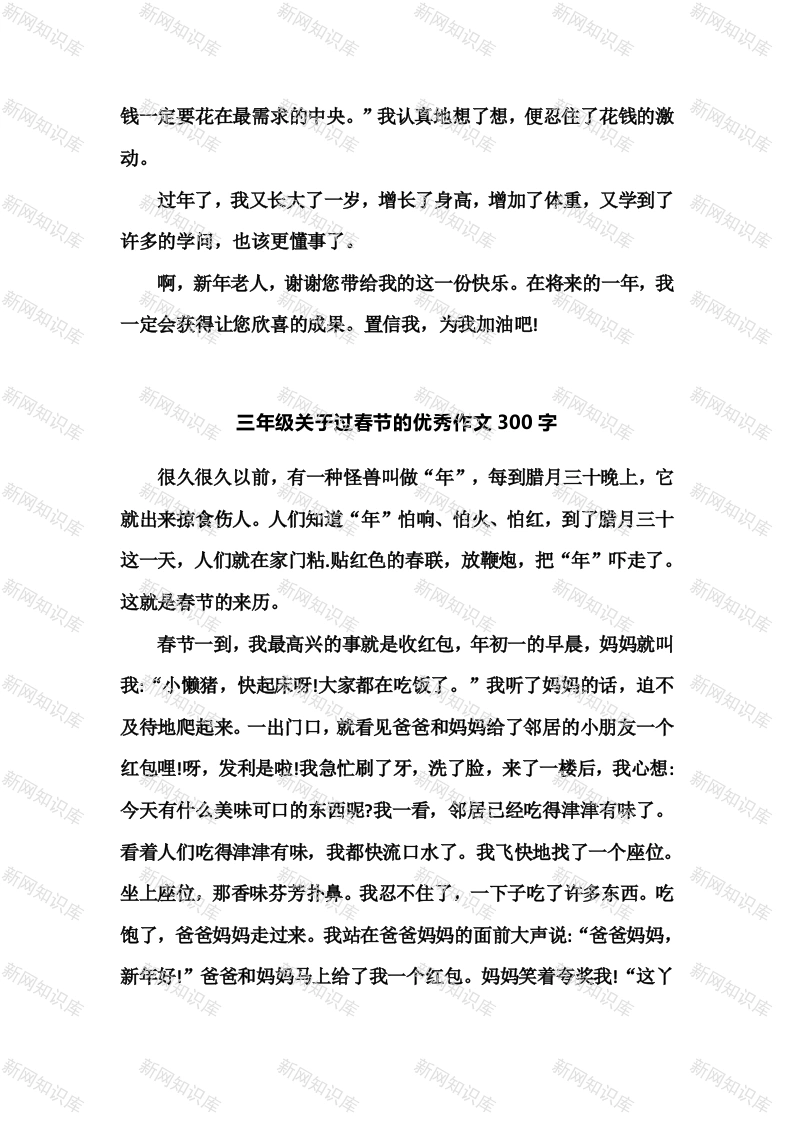 小学三年级下册-部编版语文关于过春节的优秀作文300字此内容为付费资源,请付费后查看