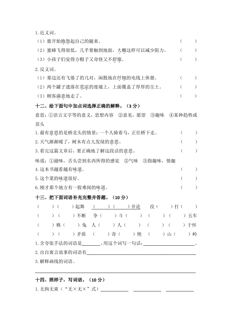 部编版三年级语文下册文字词过关检测卷此内容为付费资源,请付费后查看