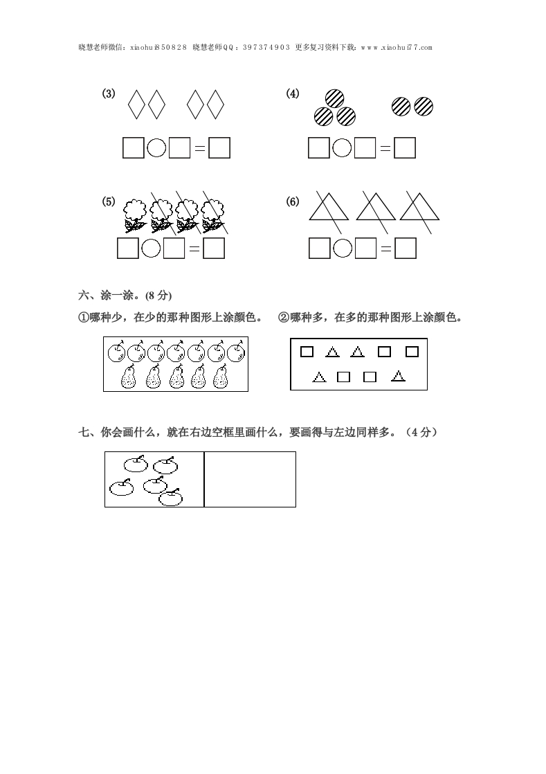 晓慧老师徽信:xohu850828晓慧老师QQ:397374903更多复习资料下载www .xiaohu77.com:人教版小学数学一年级上册第三单元检测卷h学校班级姓名:评价0:一、口算。(24分)2+1=3-3=4-1=:京4+1=2+3=2一0=::5-0=5-4=3+2=:3-1=5-1=1+2=::二、填数。(14分):25::::::赵三、比一比(在O里填上“>”、“<”或“=”。(16分)::3○42○22○55(5○30○1215○4四、按数的顺序填空。(10分)531024五、我会列式计算。(24分)(1)☆☆☆☆(2)☆☆☆☆☆□O☐=■