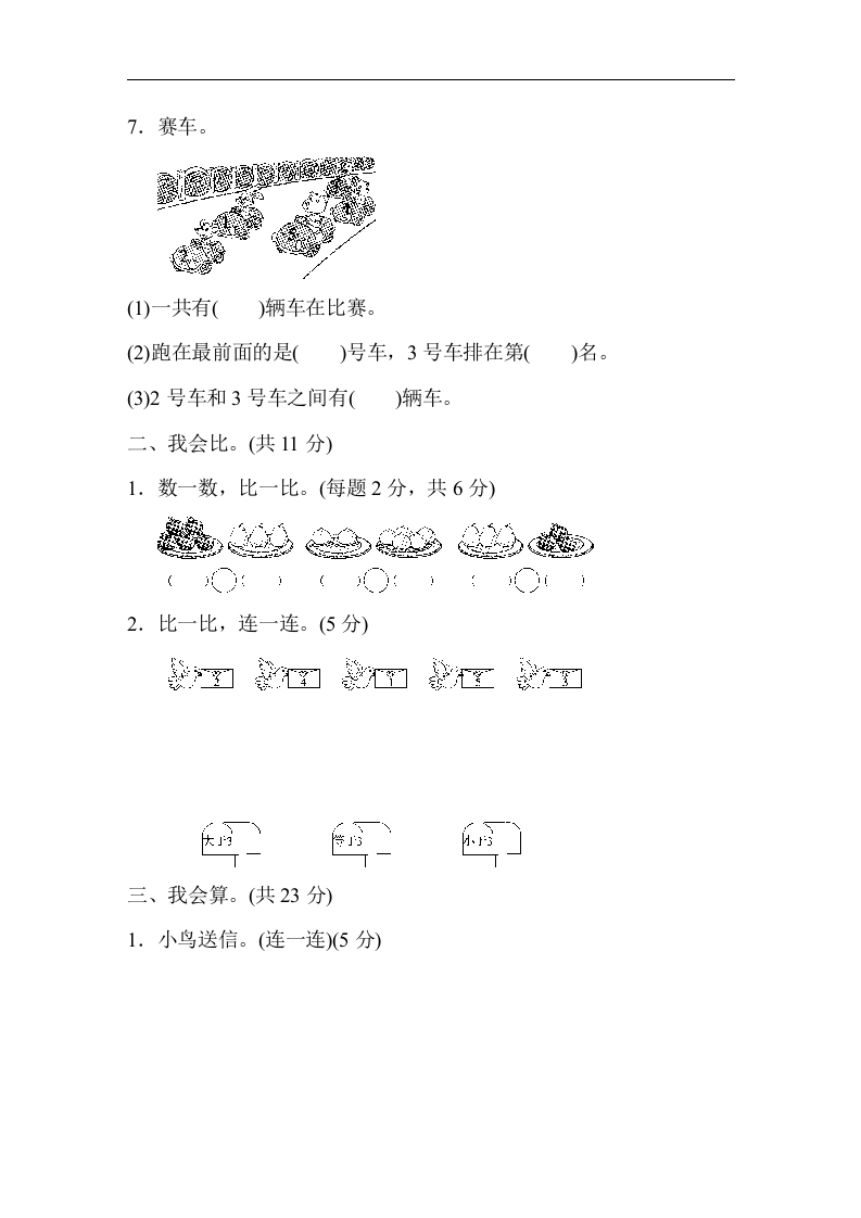 第三单元跟踪检测卷xmtt884个月前发布关注私信0.30MB6页04113 第1页 / 共6页 第2页 / 共6页 第3页 / 共6页 试读已结束,还剩3页,您可下载完整版后进行离线阅读 第三单元跟踪检测卷此内容为付费资源,请付费后查看¥1¥2会员服务免费立即购买您当前未登录!建议登陆后购买,可保存购买订单付费资源© 版权声明文章版权归作者所有,未经允许请勿转载。THE END数学 文本预览 第三单元跟踪检测卷一、我会填。(每空1分,共36分)1.数一数,有多少个草莓?三2.照样子,填一填。3.按顺序填数。235424.在里填上“十”或“一”。32=51=322=430=31=11=55.把下面各数从小到大排列:2046.在里填上“><”或“=”88834 查看更多 收起部分 喜欢就支持一下吧点赞13 分享QQ空间微博QQ好友海报分享复制链接收藏
