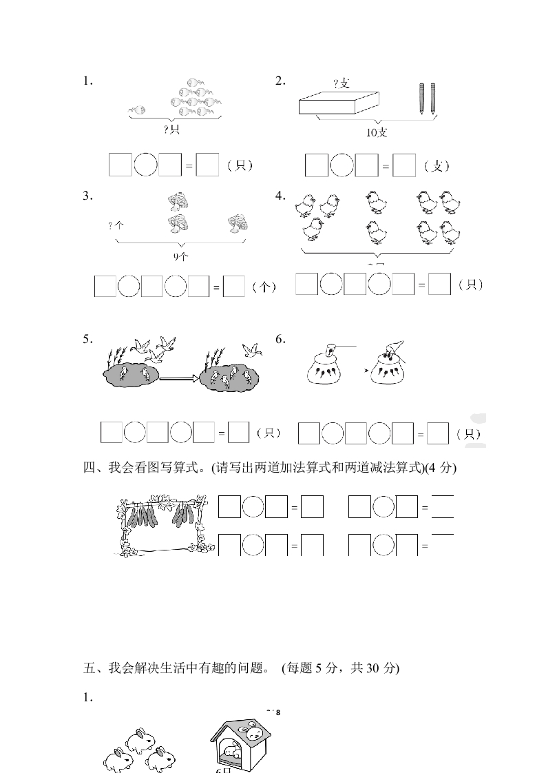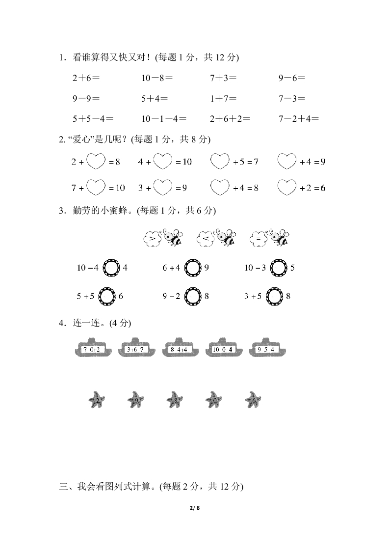 第五单元跟踪检测卷xmtt884个月前发布关注私信0.60MB8页0266 第1页 / 共8页 第2页 / 共8页 第3页 / 共8页 试读已结束,还剩5页,您可下载完整版后进行离线阅读 第五单元跟踪检测卷此内容为付费资源,请付费后查看¥1¥2会员服务免费立即购买您当前未登录!建议登陆后购买,可保存购买订单付费资源© 版权声明文章版权归作者所有,未经允许请勿转载。THE END数学 文本预览 5单元跟踪检测卷一、我会填。(每题4分,共24分)1.把6、0、9、5、10、8、3这些数,按从大到小的顺序写一写。2.按规律填数。在2的2280的89@3.比多少。心心心世世世时0比☆多☆☆☆★★冷比。少4.照样子,填一填。5.在里填上合适的数,使所有车厢里的算式的得数相等。6.猜一猜,它们分别是几?爱是8后wiiy×ianc lin我是与6相邻我是箭面的wsit2我是7和9之yl ge shu二个数闲毁置6哭。.数二、我会算。(共30分)1/8 查看更多 收起部分 喜欢就支持一下吧点赞6 分享QQ空间微博QQ好友海报分享复制链接收藏