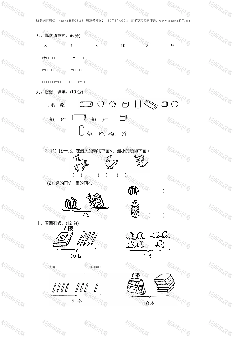 新人教版小学一年级数学上册期中试卷12此内容为付费资源,请付费后查看