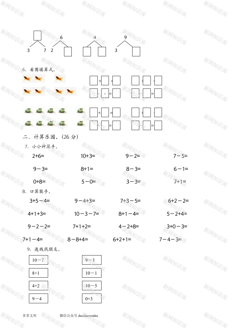 新人教版小学一年级数学上册期中试卷6此内容为付费资源,请付费后查看