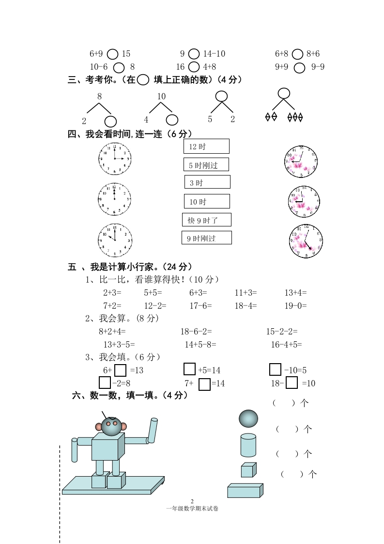 人教版一年级数学上册期末测试卷2此内容为付费资源,请付费后查看