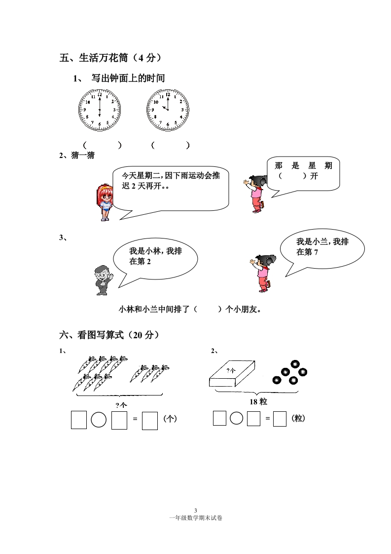 人教版一年级数学上册期末测试卷4此内容为付费资源,请付费后查看