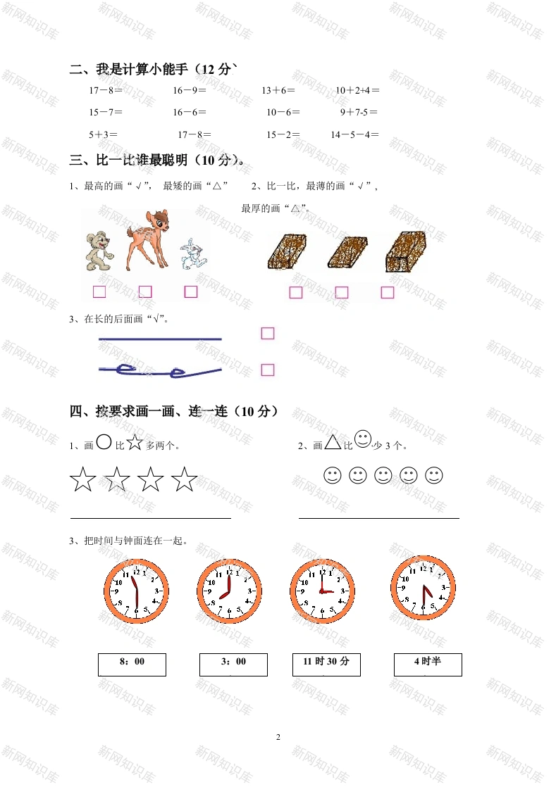 人教版一年级数学上册期末测试卷8此内容为付费资源,请付费后查看