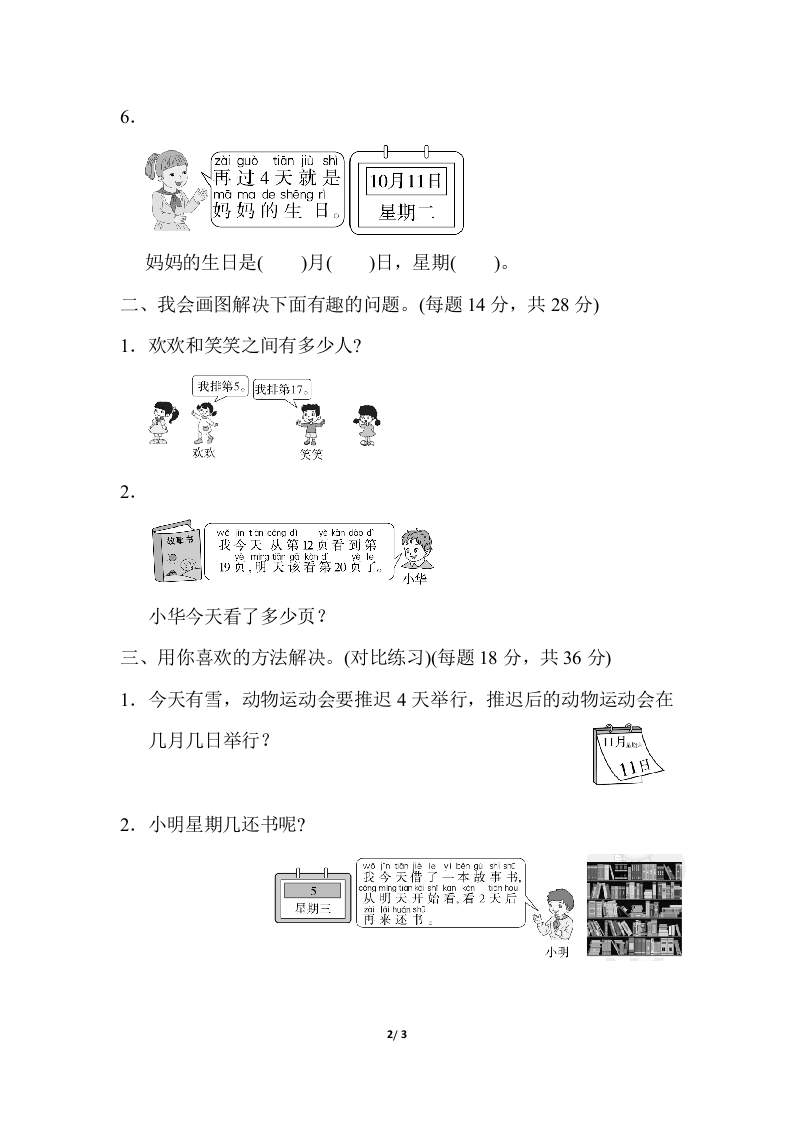 期末总复习重难点突破卷2xmtt884个月前发布关注私信0.47MB3页04412 第1页 / 共3页 第2页 / 共3页 第3页 / 共3页 已完成全部阅读,共3页 期末总复习重难点突破卷2此内容为付费资源,请付费后查看¥1¥2会员服务免费立即购买您当前未登录!建议登陆后购买,可保存购买订单付费资源© 版权声明文章版权归作者所有,未经允许请勿转载。THE END数学 文本预览 期末总复习重难点突破卷2会解决有关“之间”的问题一、我会填。(每题6分,共36分)1.④烟☑中问右〔)个数2.第11棵树和第19棵树之间有()棵树。第11棵第19棵管3.网购。r3ma.n tion20的shorg g的i66妈妈今天早上统wowrg go c y shuang yu5我网购了一双运是期三dong xi动程,4后到货。星期()收到运动鞋。4.从前往后数.我排在第3笼,我管雷途箸8果文,共有()个人。5.小峰和小宝之间有()人我排第3小峰我排第9。小宝1/3 查看更多 收起部分 喜欢就支持一下吧点赞12 分享QQ空间微博QQ好友海报分享复制链接收藏