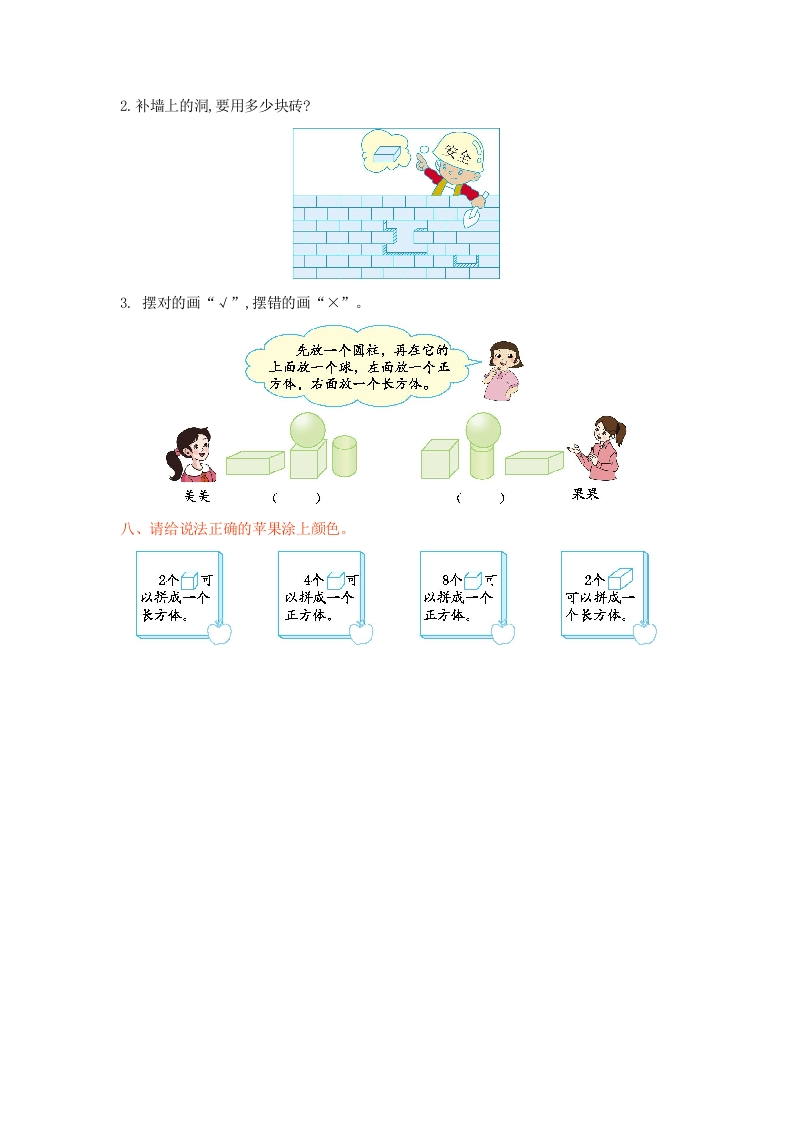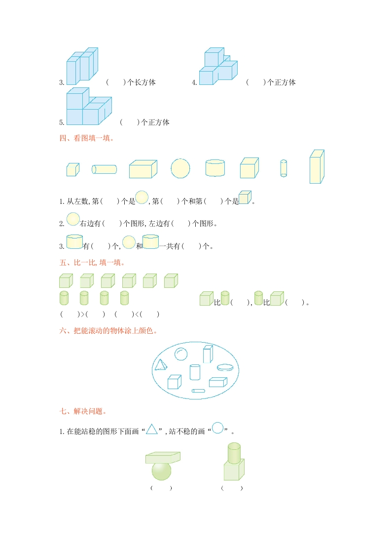 冀教版数学一年级上册第三单元测试卷及答案xmtt884个月前发布关注私信0.45MB4页03214 第1页 / 共4页 第2页 / 共4页 第3页 / 共4页 试读已结束,还剩1页,您可下载完整版后进行离线阅读 冀教版数学一年级上册第三单元测试卷及答案此内容为付费资源,请付费后查看¥1¥2会员服务免费立即购买您当前未登录!建议登陆后购买,可保存购买订单付费资源© 版权声明文章版权归作者所有,未经允许请勿转载。THE END数学 文本预览 第三单元测试卷一、辨辨。1.是圆柱的画“七”,是球的画“△×”。茶叶2.是长方体的画“七”,是正方体的画“△×”。二、连一连。三、数一数,填一填。有()个圆柱和()个球。2.X有()个圆柱,()个长方体和()个球。 查看更多 收起部分 喜欢就支持一下吧点赞14 分享QQ空间微博QQ好友海报分享复制链接收藏
