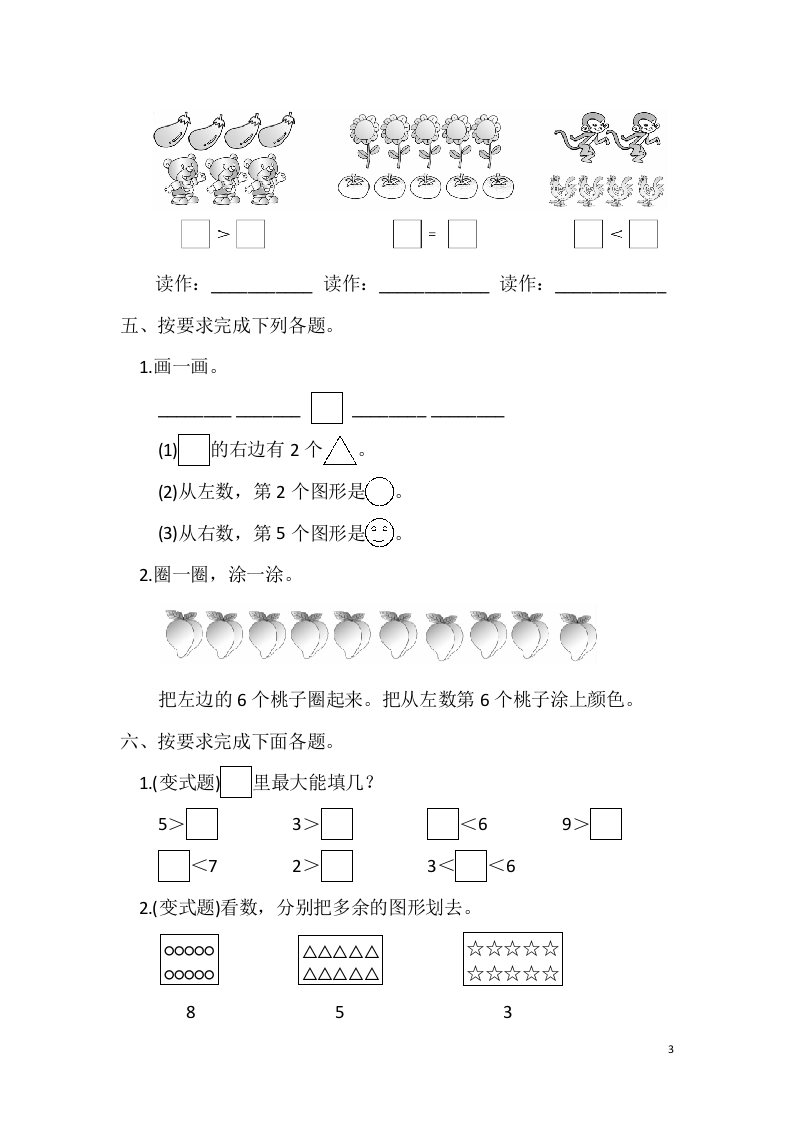 冀教版数学一年级上册第二单元测试题及答案xmtt884个月前发布关注私信0.28MB6页0576 第1页 / 共6页 第2页 / 共6页 第3页 / 共6页 试读已结束,还剩3页,您可下载完整版后进行离线阅读 冀教版数学一年级上册第二单元测试题及答案此内容为付费资源,请付费后查看¥1¥2会员服务免费立即购买您当前未登录!建议登陆后购买,可保存购买订单付费资源© 版权声明文章版权归作者所有,未经允许请勿转载。THE END数学 文本预览 第二单元测试题及答案一、填一填,圈一圈。1.看图写数。梦梦新时醉E2.数一数,把对应的数圈起来。绣麻蓉养(567〔351(789)3()12()()567()9()4把小鸟上的数字按从小到大的顺序排列。酱(1)一共有(种蔬菜。(2)从左往右数,是第()个,第(个是.的左边有()种蔬菜,的右边有()种蔬菜。1 查看更多 收起部分 喜欢就支持一下吧点赞6 分享QQ空间微博QQ好友海报分享复制链接收藏