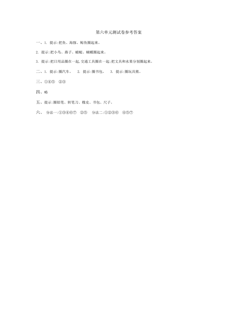 冀教版数学一年级上册第六单元测试卷及答案xmtt884个月前发布关注私信0.41MB3页0485 第1页 / 共3页 第2页 / 共3页 第3页 / 共3页 已完成全部阅读,共3页 冀教版数学一年级上册第六单元测试卷及答案此内容为付费资源,请付费后查看¥1¥2会员服务免费立即购买您当前未登录!建议登陆后购买,可保存购买订单付费资源© 版权声明文章版权归作者所有,未经允许请勿转载。THE END数学 文本预览 第六单元测试卷一、圈一圈。1.把在水中生活的动物圈起来。2.把会飞的动物圈起来。3.把同类的圈在一起。S二、把不同类的圈出来。73r3.三、把下面的小动物分成两类。(填序号)香②)一类是(),另一类是( 查看更多 收起部分 喜欢就支持一下吧点赞5 分享QQ空间微博QQ好友海报分享复制链接收藏