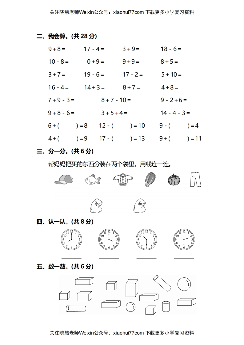 北师大版一年级数学上册期末检测卷此内容为付费资源,请付费后查看