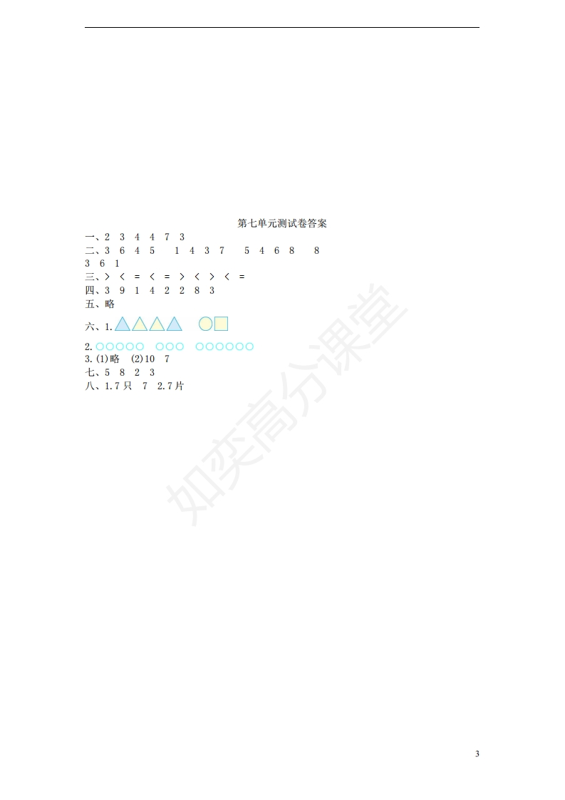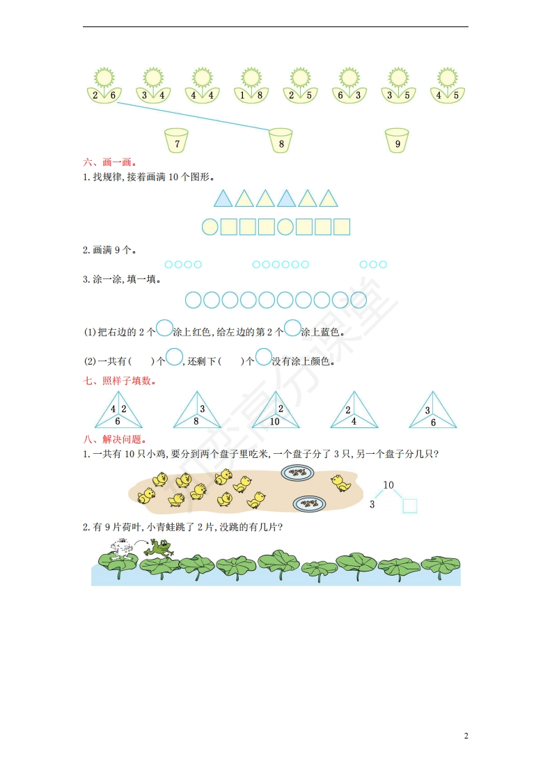 一年级数学上册第七单元分与合测试卷苏教版(完整版)xmtt884个月前发布关注私信0.43MB3页0405 第1页 / 共3页 第2页 / 共3页 第3页 / 共3页 已完成全部阅读,共3页 一年级数学上册第七单元分与合测试卷苏教版(完整版)此内容为付费资源,请付费后查看¥1¥2会员服务免费立即购买您当前未登录!建议登陆后购买,可保存购买订单付费资源© 版权声明文章版权归作者所有,未经允许请勿转载。THE END数学 文本预览 第七单元分与合一、看图写数。恩忠恩恩奥白二、填表。7891074245539三、在○里填上“”“<”或“=”10○87○86○6291○4○04○80○7○h四、填一品5510品a五、每朵花应该栽在哪个花盆里?用线连起来。 查看更多 收起部分 喜欢就支持一下吧点赞5 分享QQ空间微博QQ好友海报分享复制链接收藏