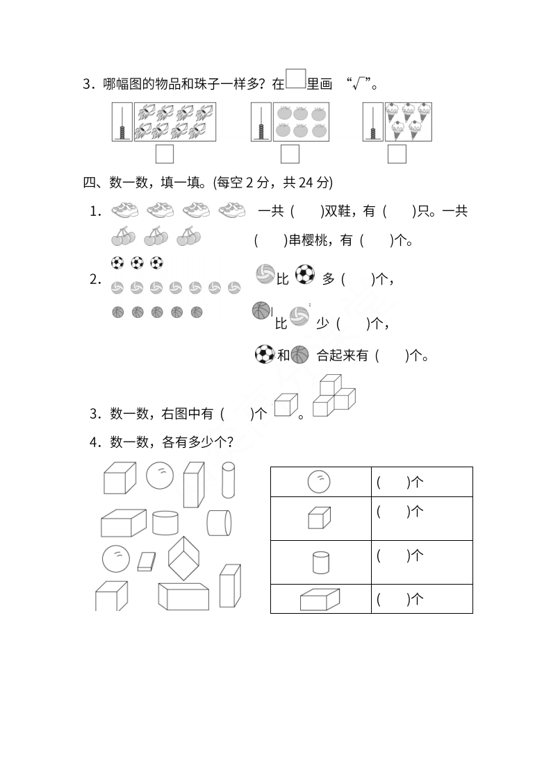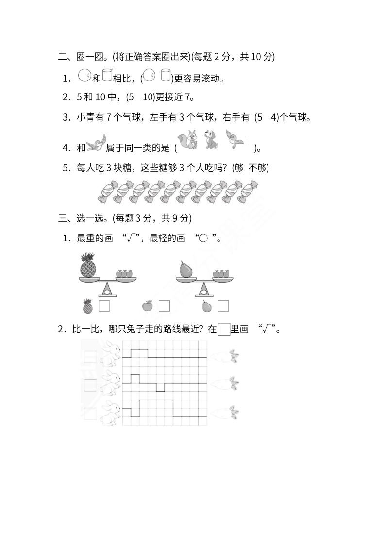 苏教版数学一年级上册期中检测卷此内容为付费资源,请付费后查看