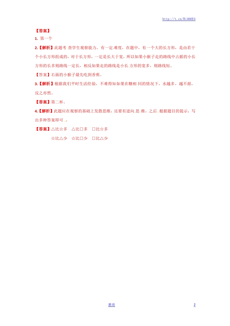 一年级数学上册一课一练-2.3比一比-苏教版xmtt884个月前发布关注私信0.10MB2页0328 第1页 / 共2页 第2页 / 共2页 已完成全部阅读,共2页 一年级数学上册一课一练-2.3比一比-苏教版此内容为付费资源,请付费后查看¥1¥2会员服务免费立即购买您当前未登录!建议登陆后购买,可保存购买订单付费资源© 版权声明文章版权归作者所有,未经允许请勿转载。THE END数学 文本预览 http://t.cn/Ri466E4苏教版一上同步课课练2.3比一比1.比较距离,看看哪只小刺猬能最先到达松树位置,在圈里画“√”。2猜一猜,哪只小猴子最先吃到香蕉,在你选中的小猴子上面画“√”。3.猜一猜,在有相同糖块的情况下,哪杯水会更甜呢?在你选中的杯子下画“√”。&08⊙)()4.根据下图中的个数,你能填出几种不同的答案。☆☆☆☆☆☆△△△△△△△△△▣口口口口口口口比多,比多,比多,比少.比少,比少」教直1 查看更多 收起部分 喜欢就支持一下吧点赞8 分享QQ空间微博QQ好友海报分享复制链接收藏