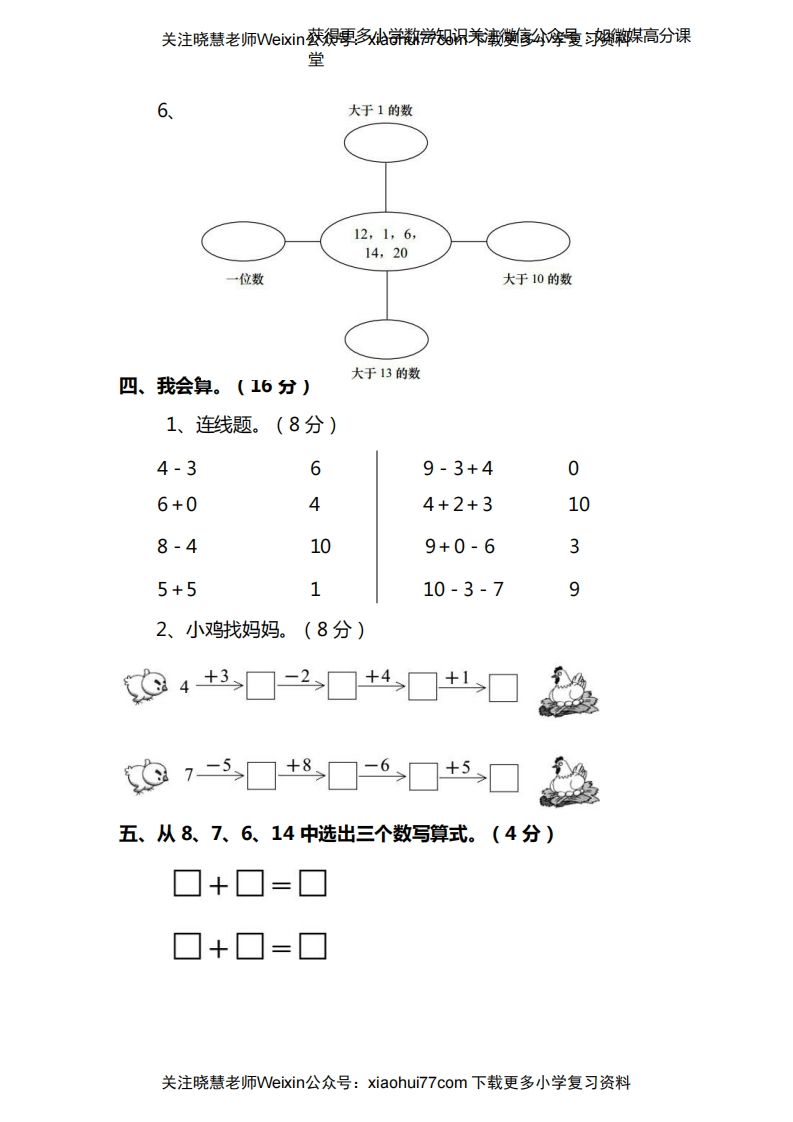 西师大版1年级数学上册期末检测卷(附答案)此内容为付费资源,请付费后查看