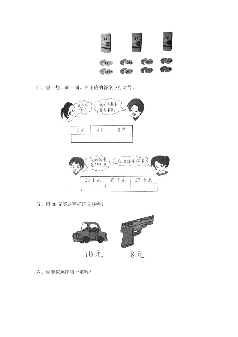 西师版一年级数学上册综合练习题xmtt884个月前发布关注私信0.48MB5页0379 第1页 / 共5页 第2页 / 共5页 第3页 / 共5页 试读已结束,还剩2页,您可下载完整版后进行离线阅读 西师版一年级数学上册综合练习题此内容为付费资源,请付费后查看¥1¥2会员服务免费立即购买您当前未登录!建议登陆后购买,可保存购买订单付费资源© 版权声明文章版权归作者所有,未经允许请勿转载。THE END数学 文本预览 西师版一年级数学上册练习题一、写一写,画一画。十个十个+内+中本+本515(306铺0()十人十个十个()个十和()个一。()个十和()个一。()个十和()个一。二、看图列式。2我们有10只3一共有多少只小动物?□O□-☐(只)超我们有4只 查看更多 收起部分 喜欢就支持一下吧点赞9 分享QQ空间微博QQ好友海报分享复制链接收藏