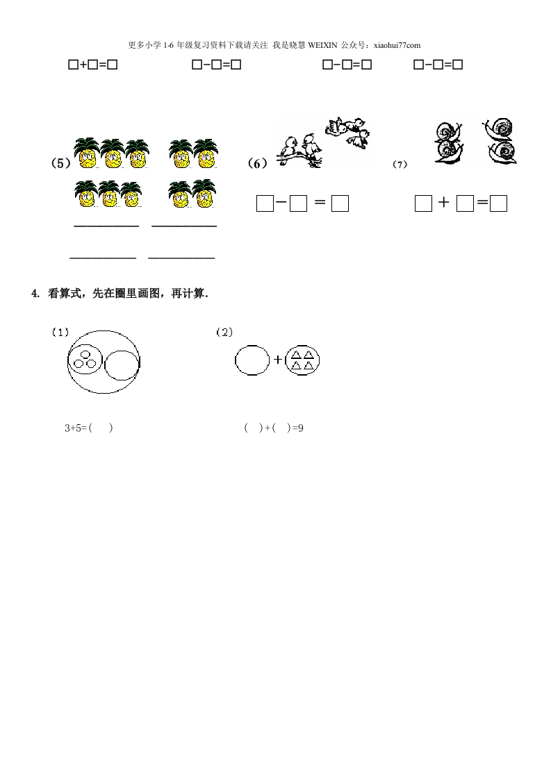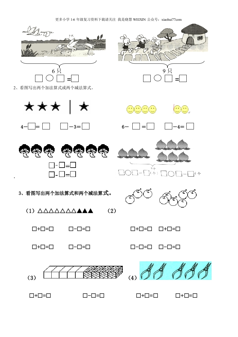 一年级上数学看图列式常见题型及练习xmtt884个月前发布关注私信3.77MB25页04813 第1页 / 共25页 第2页 / 共25页 第3页 / 共25页 试读已结束,还剩22页,您可下载完整版后进行离线阅读 一年级上数学看图列式常见题型及练习此内容为付费资源,请付费后查看¥1¥2会员服务免费立即购买您当前未登录!建议登陆后购买,可保存购买订单付费资源© 版权声明文章版权归作者所有,未经允许请勿转载。THE END数学 文本预览 更多小学16年级复习资料下载请关注我是晓慧VEIXIN公众号:xiaohui7?7com1、看图写算式。留Apf n都都都☐+☐=■□-□=口□0□-□A丛AA丛□+□=□□+□=口□□=口10吱霜合合6支☑口O□=口4根3根10个?根88?个7h=■□○□□金0097pPo?朵4+0=☐□+□=☐□○□=□ 查看更多 收起部分 喜欢就支持一下吧点赞13 分享QQ空间微博QQ好友海报分享复制链接收藏