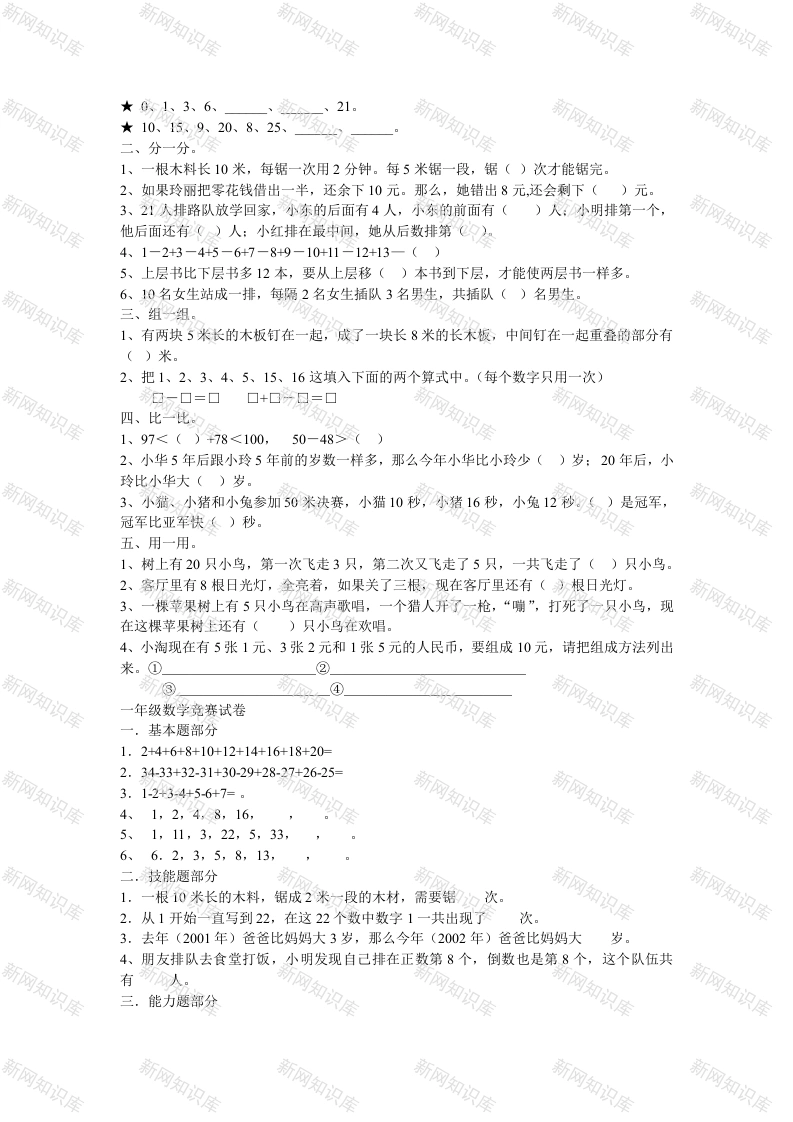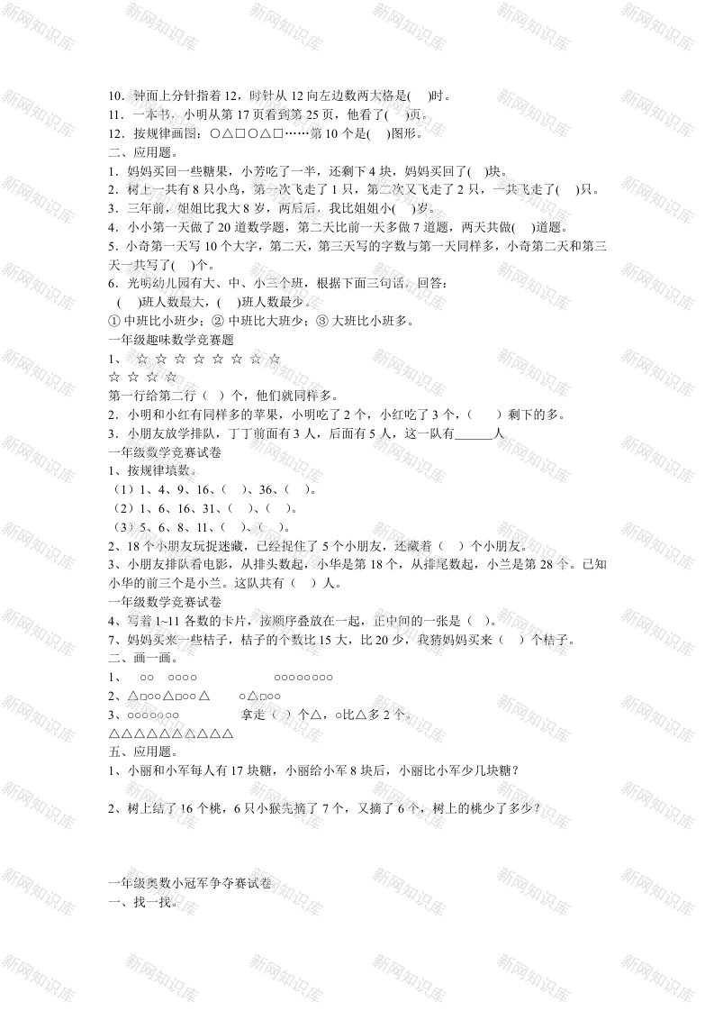 一年级上册数学竞赛试题此内容为付费资源,请付费后查看